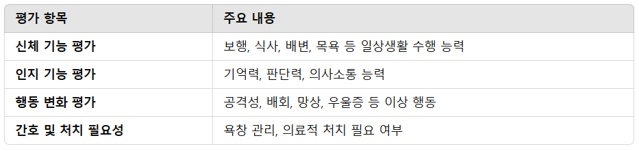 ✔ 신체 기능 & 인지 기능 점검 (식사, 보행, 대소변 처리 능력 등)